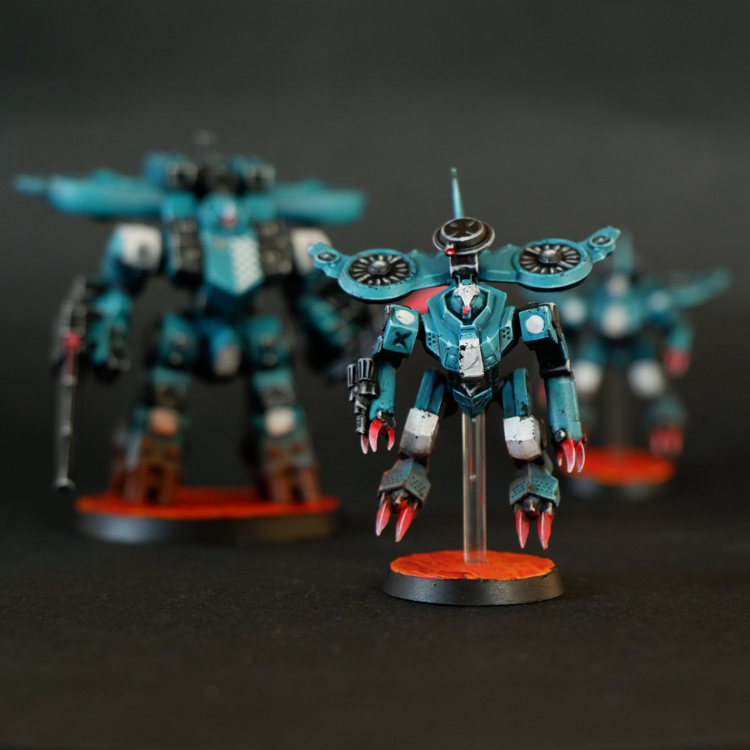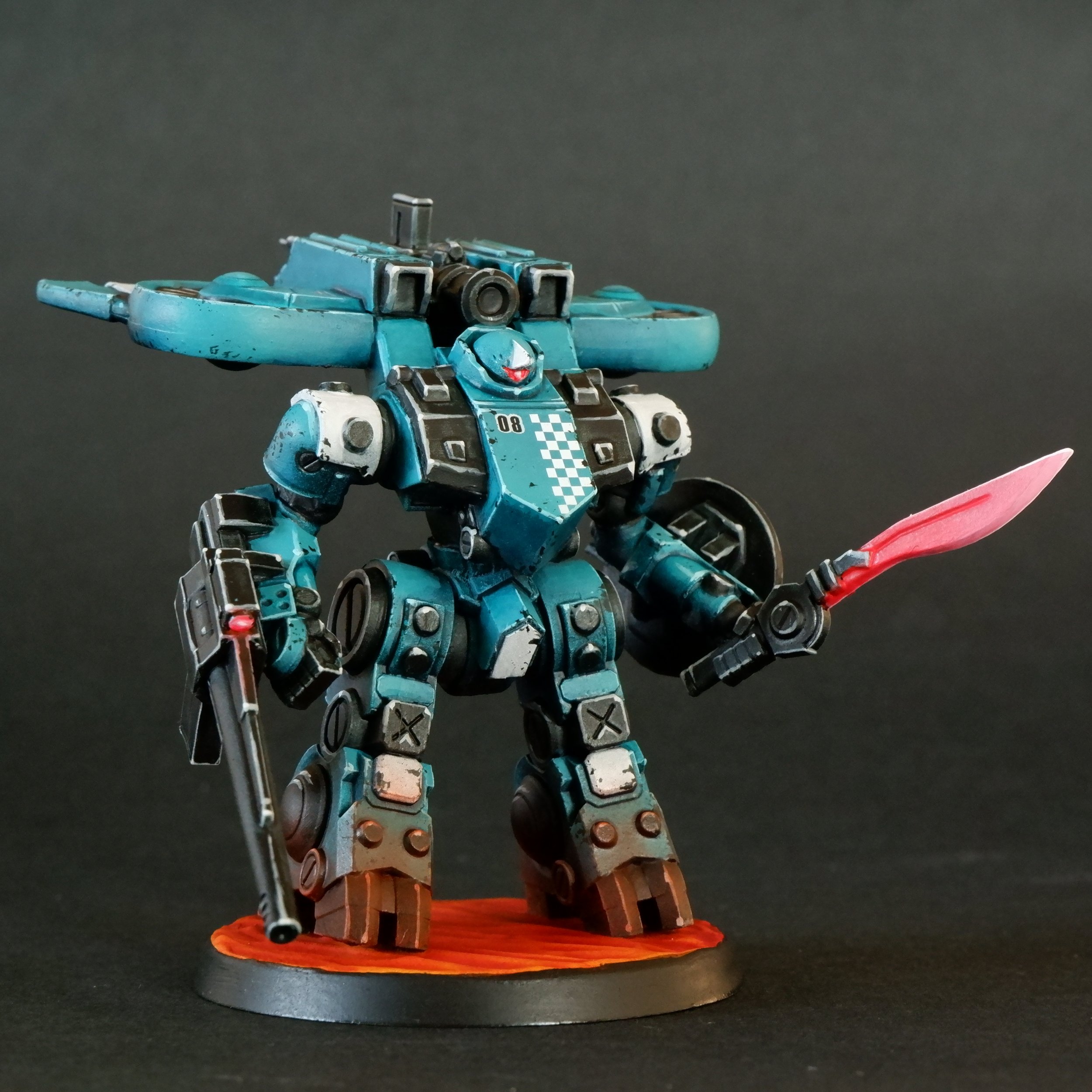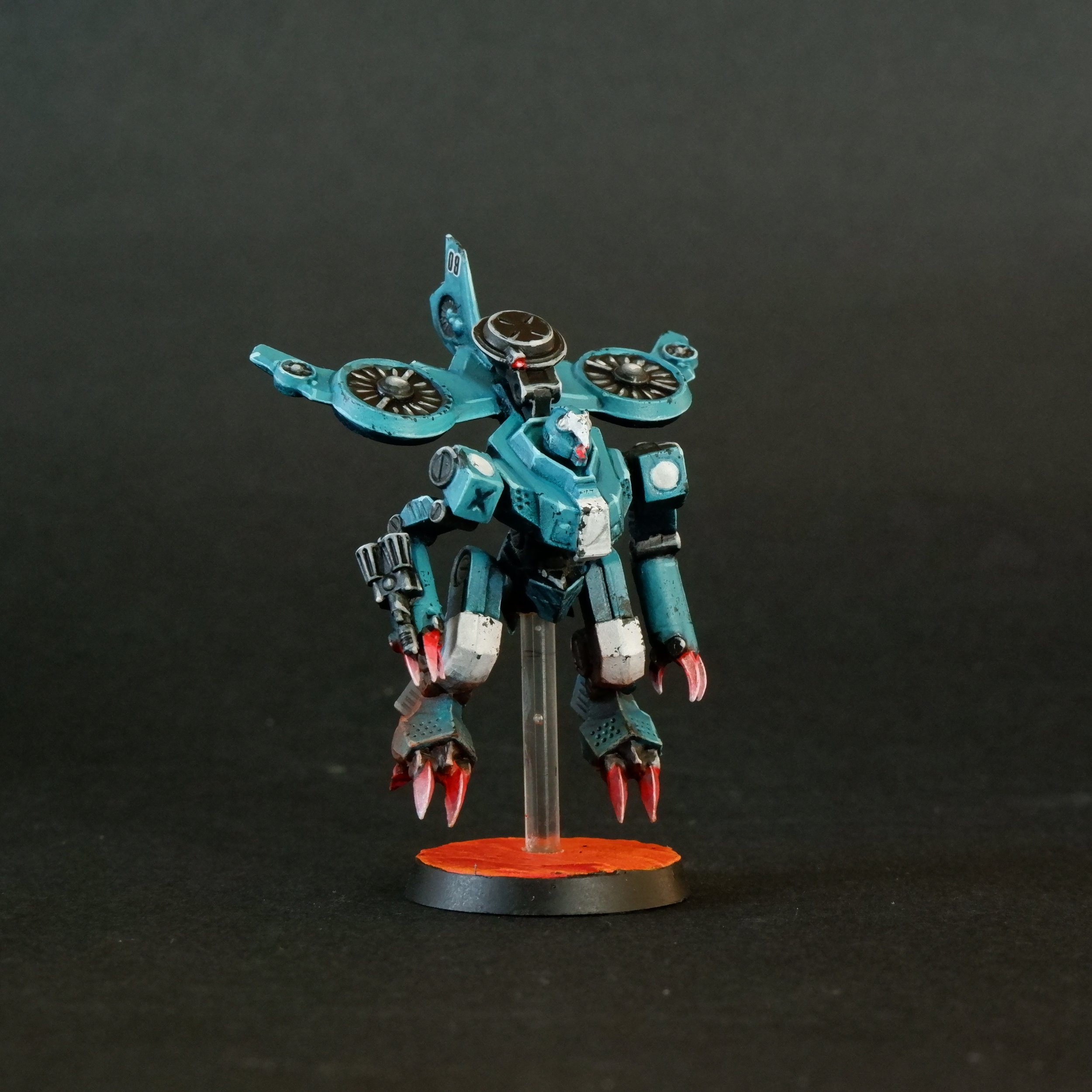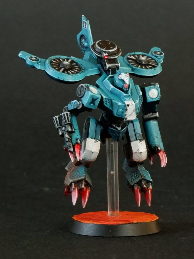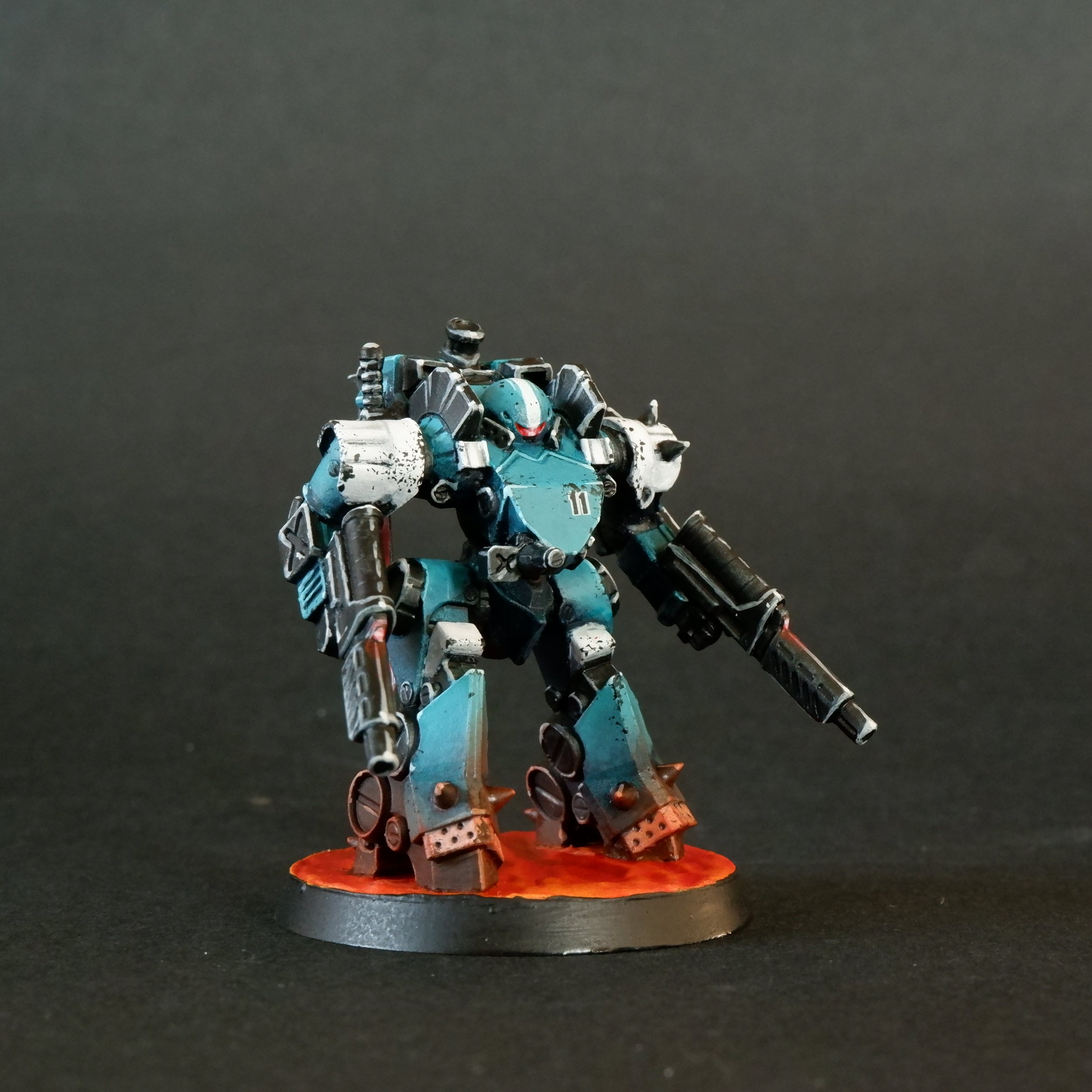 For the weathering I used a sponge and some black paint to give a used and battled look to the mechs as well as some orange pigments on the feet.