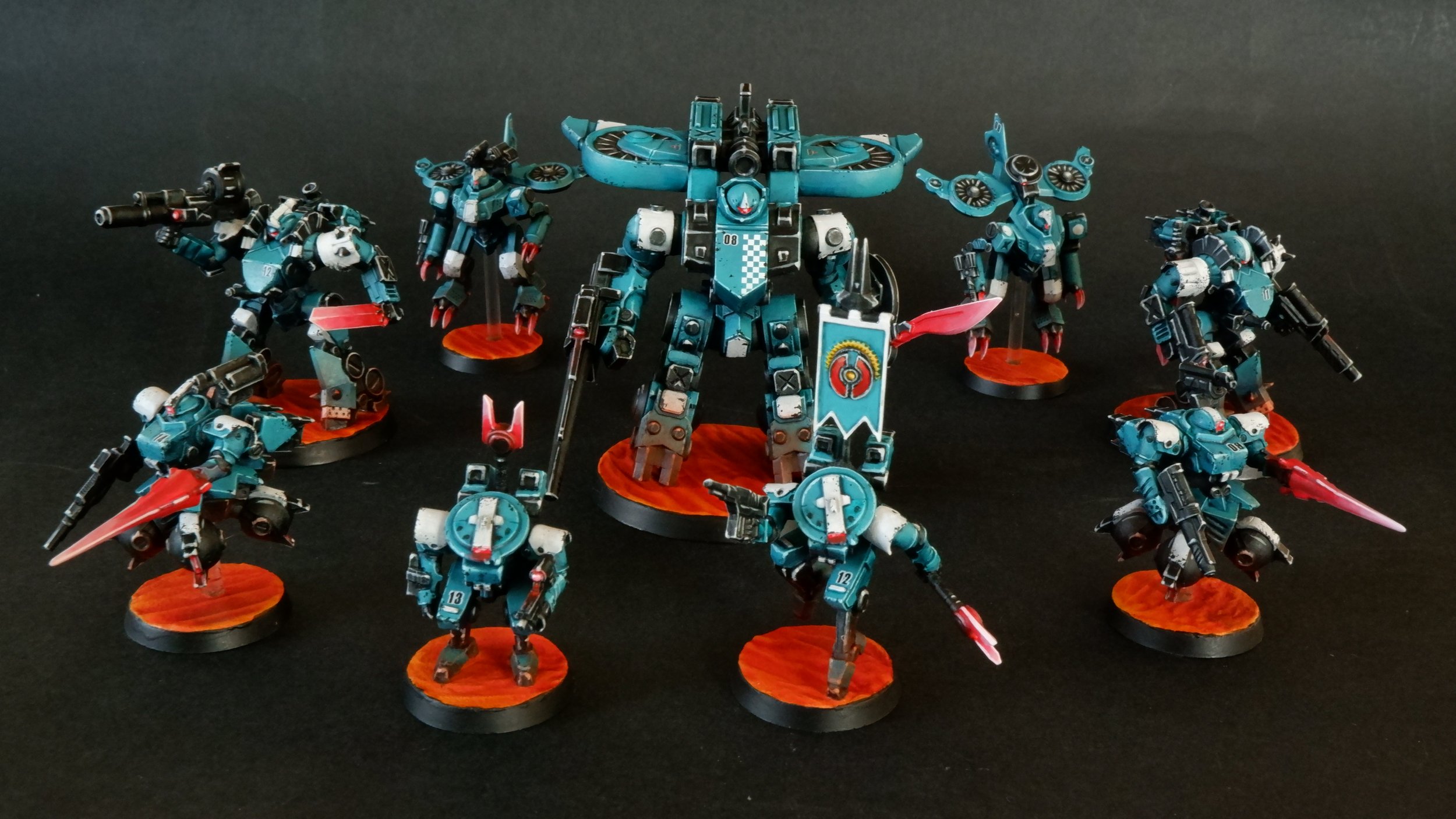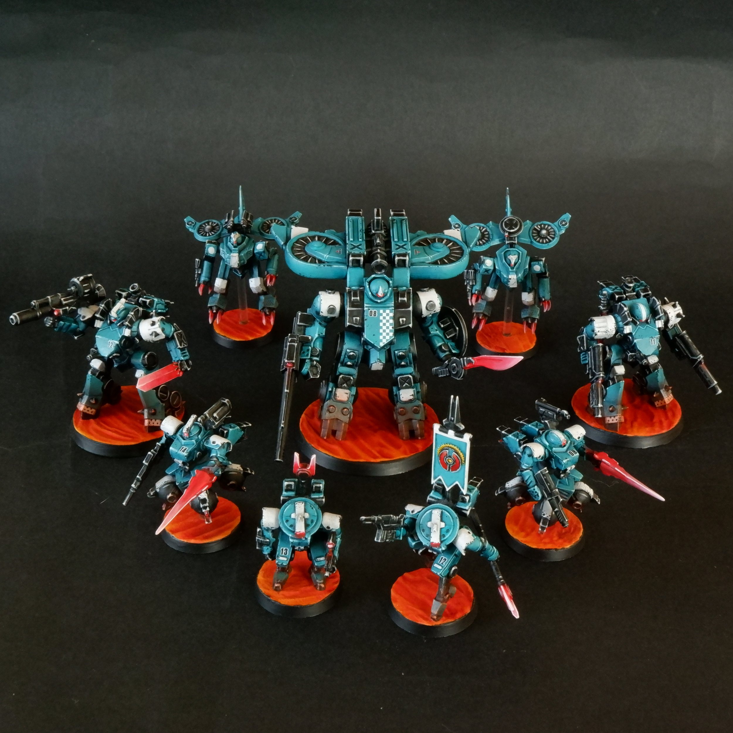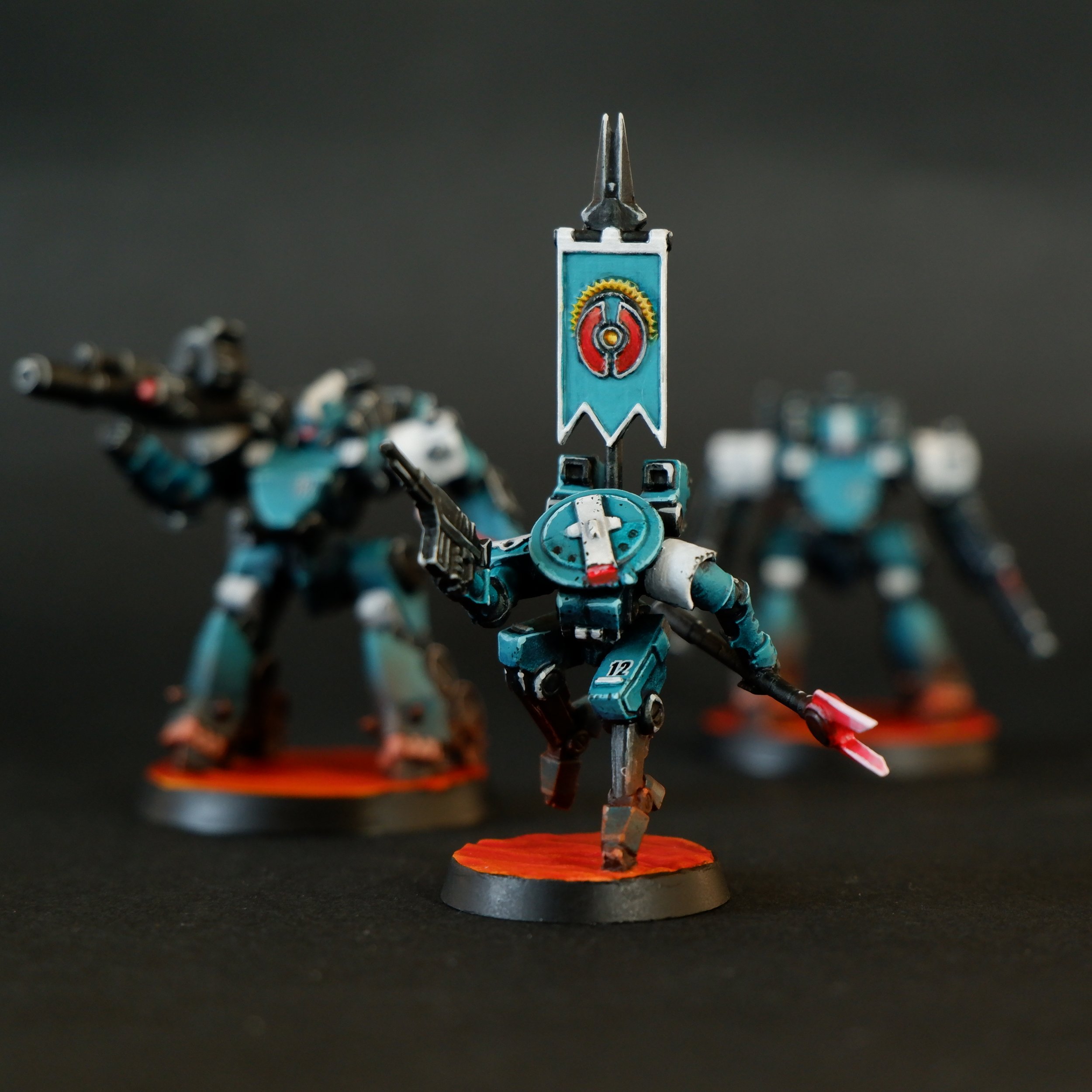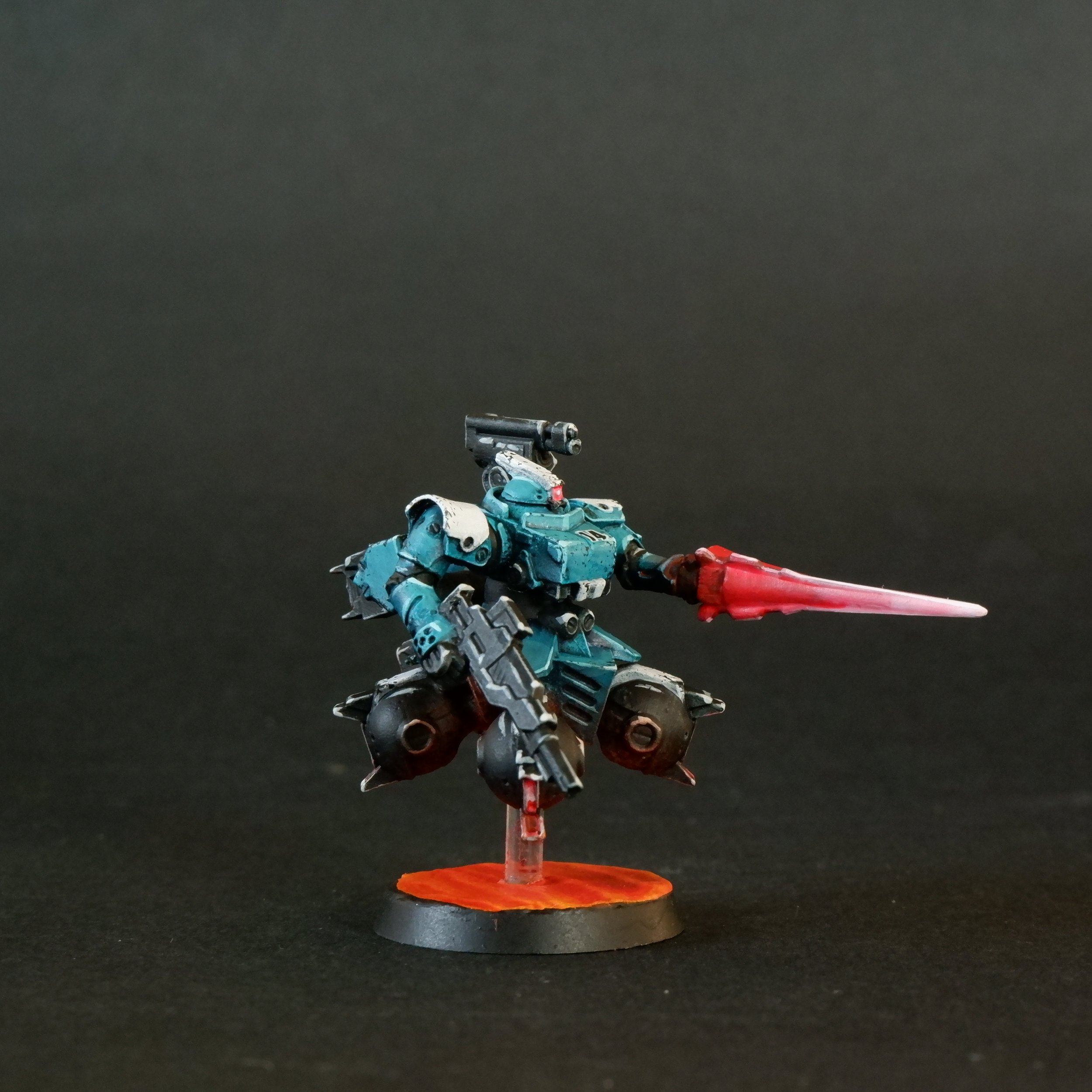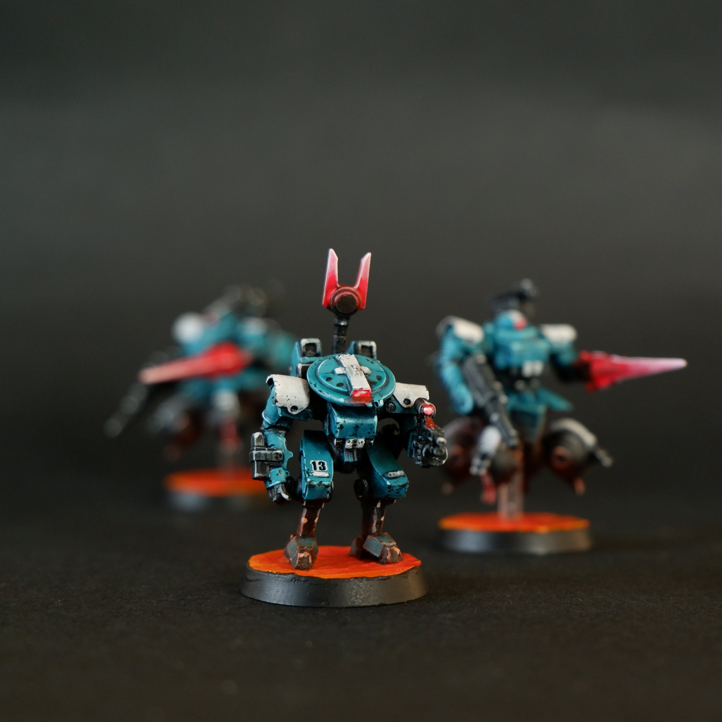 For the weathering I used a sponge and some black paint to give a used and battled look to the mechs as well as some orange pigments on the feet.