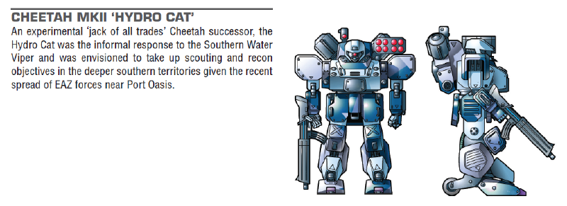 More than just maps and stories, each adventure module comes with a special features section you can use to expand your campaigns with new ideas and fresh challenges. Tempest Winds comes with an additional player archetype - the Handler. These animal enforcers bond and train with creature companions and work as a unit to sniff out threats and hunt down their targets. One Minute to Midnight comes with a series of high risk, high reward scenarios that can be dropped into any campaign or adventure for a little extra spice. Should you and your squadmates overcome these challenges, special rewards like the experimental Hydro Cat Cheetah MKII will be yours to enjoy.