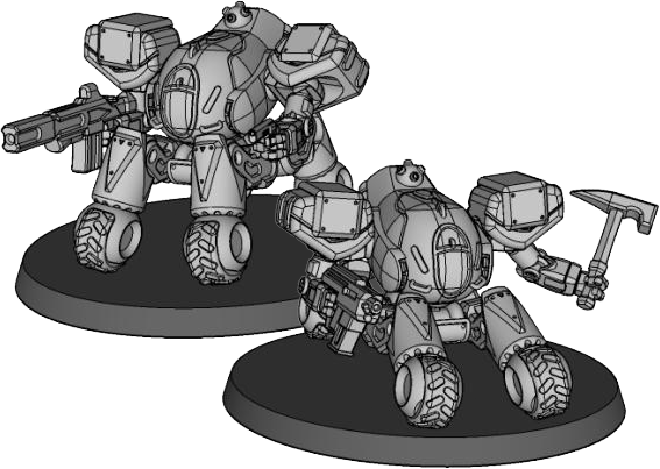 | Sarru Quasar | 14 | GP, SK, FS | W/G:6 | 8 | 4/2 | 1 | 4+ | 4+ | 6+ | LRG, MP, HCW (Demo:4), LSG | LATM (Link), MHG, MAPGL | Hands, Climbing, Brawl:2, React+ | Gear | 2" |