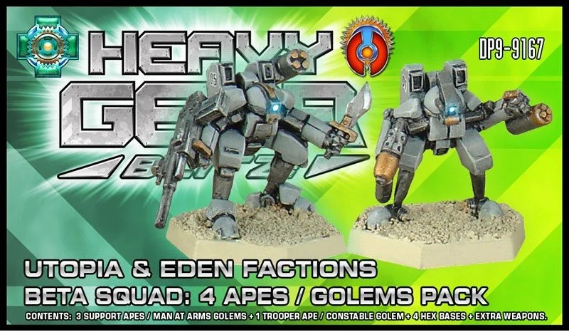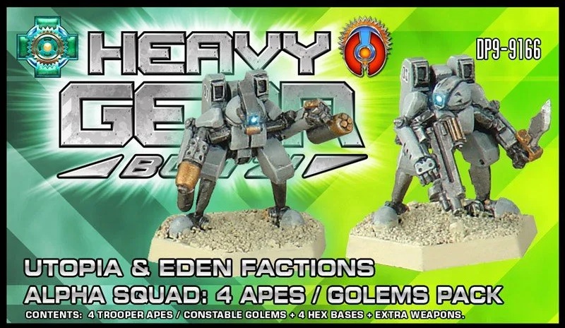 The same Golem technology that Eden employs has long been used on Utopia, though the Utopians took the suits down a different technological development path. The Utopians called their technological adaptations APES (Augmented Personal Environmental Suits) and they were prominent in the Horseman Wars that ravaged Utopia after the nuclear apocalypse. The Utopian forces still utilize troupes APES on the front line alongside automaton formations. Fundamentally the Trooper and Support APES are the same core machines as an Edenite constable and man at arms golems. However, during the opening weeks of the War for Terra Nova, Utopian APES units are much more advanced than their Edenite counterparts. This is mostly due to the higher standards of maintenance and availability of parts and support personnel. Most APES feature some sort of wave dye technology in their suits and can change camouflage at will and baffle most typical sensors. Some units even have access to second generation wave dyes that generate a near invisibility by projecting the images around them rather than camouflage schemes. Troupes of such APES are commonly deployed via aerial insertion as raiders and paratroopers. Their primary role is to disrupt Terranovan defenders and deal with troublesome targets via pinpoint strikes. These units were very successful and the CEF requested that Utopia help bring some Edenite units up to the same standard of equipment. The Edenite version of these units is more of a raider and marauder.