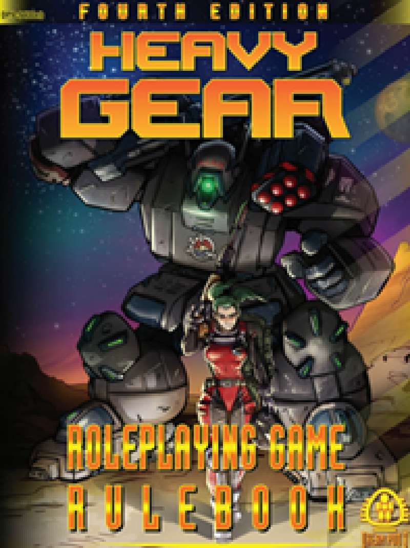 - Heavy Gear 4th Edition RPG: Heavy Gear Roleplaying Game 4e, the newly released 4th edition of the venerable Heavy Gear Roleplaying game, back after close to 20 years of laying dormant, biding it’s time. The 4th edition of the rules updates the silhouette dice system to be in line with the 3.1 blitz version, people familiar with playing blitz will feel very at home with HG 4e’s combat. In terms of differences from the classic heavy gear of 1st and 2nd edition, it removes the “Stat Number” approach to attributes of the Classic Heavy Gear system, replacing it with a more narrative description-based take on player characteristics. It still retains the crunchy mecha combat of the classic but with a more streamlined approach more in line with modern RPGs. It is an interesting combination of descriptive narrative roleplay with detailed tactical combat rules. Characters have a series of Aptitudes, Quirks and Adversities such as “Hot-headed”, “Paranoid”, “Cynical” and it’s up to the players to determine when these will give their characters an edge or a penalty. This type of narrative roleplay can be quite different than some of the more prescriptive systems out there, and works best when players flesh out well-rounded characters. This narrative approach to roleplay carries over to the more narrative approach to skills which can be very precise and narrow to more broad and generalized, this allows you to tailor your characters to your specific setting which doesn’t have to be combat focused. 4th edition uses a unique combat damage system which can cause physical as well as mental/emotional damage as your characters strain under the stress of combat.