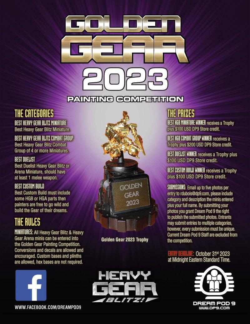 - Best Heavy Gear Blitz Miniature Winner receives a Trophy plus $100 USD DP9 Store credit.