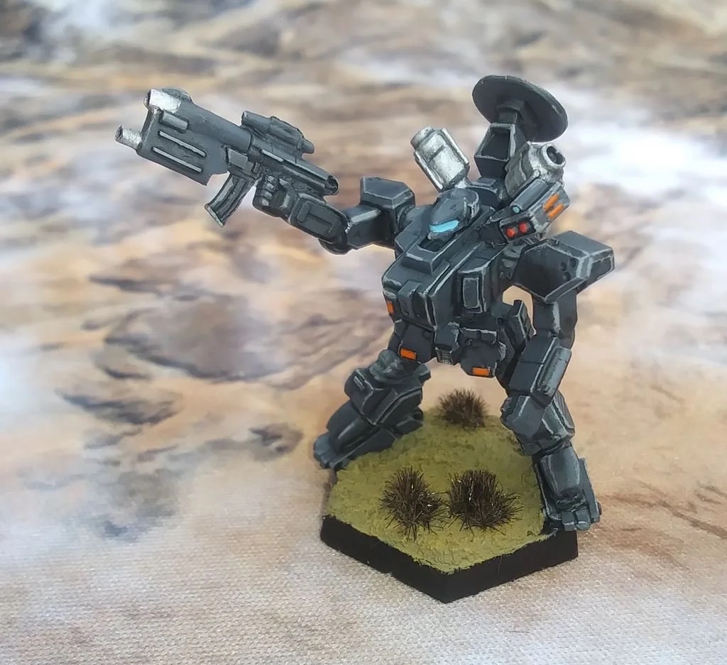 I’ve got four of these despite the one pic below, two Alpha loadout with medium rifles and two Chi loadout with light grenade launchers. Not that any of them are likely to make much use of their weapons. They’re espionage specialists, as strong as any other electronic warfare unit in the game with extended sensors and stealth in their favor. They pair well with combat gears, providing an ECM defense bubble, target designator for guided attacks, or jamming/haywire attacks to cripple targets before a direct attack.