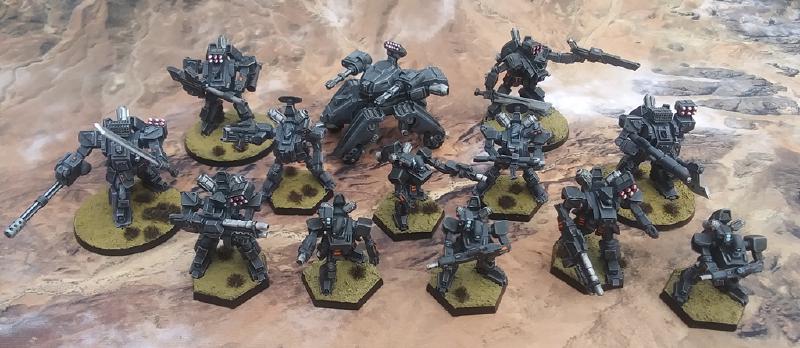 A pair of Beta loadouts with the combo heavy autocannon and underslung grenade launchers. They usually serve as Ace Gunner duelists in my forces, and are the building block of any list. Just great all around combat generalists.