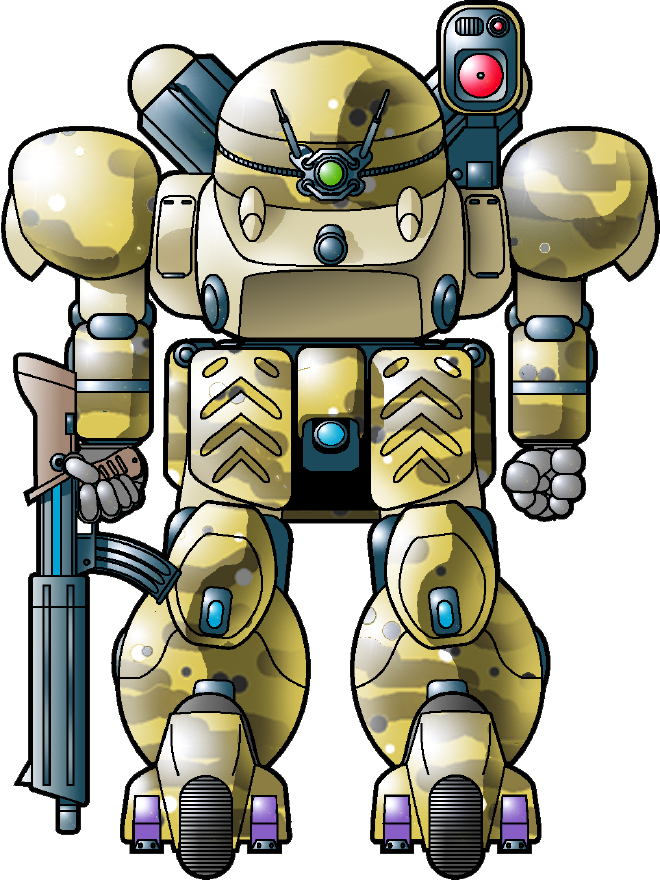 The Nash Basilisk was one of the earliest southern gears to be equipped with a radar absorbent material coating which resulted in an early stealth gear. The modifications were originally made by technicians from the MILICIA’s 11th Gear Regiment, the Rapiers, in the TN 1860s. The Rapiers treated more favorably than most MILICIA units. Consequently, it was the Rapiers who found that, in open ground, the gear remained difficult to conceal even after the coating was applied. However, when used in combination with natural cover, the gear’s new skin permitted the vehicle to approach targets while very likely remaining undetected. Should the gear remain immobile in cover, stealth performance goes from good to excellent. The Rapiers immediately began using the new model as an ambush specialist, equipping it with heavy weaponry such as bazookas.
