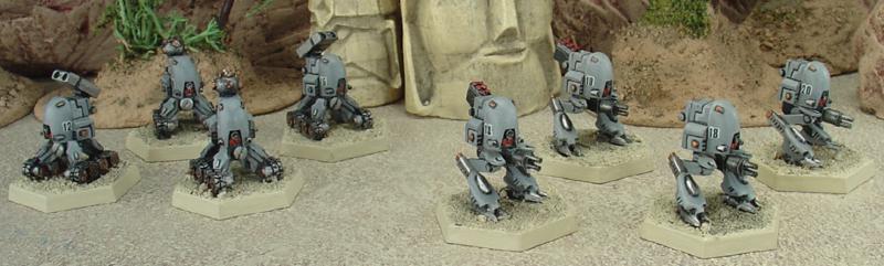Utopian N-KIDUs (Neural-Kinetic Interceptor Drone Units) were developed after the CEF conquest of Utopia. Cheap and expendable, these units are often seen in large masses supported by Armiger pilots who guide them into battle. Often, Armigers or APEs are not available to oversee every single drone unit and thus some are sent out without human oversight. These clusters are called SIN Clusters and are composed of a command drone with some combination of other N-KIDUs. These units are often given simple tasks such as search and destroy or to patrol certain regions and will continue to do so until new orders arrive. This has two major effects, first it allows Utopian units to cover far more territory than their manpower would imply. Second is that the Utopia NAI (Near Artificial Intelligence) communicates with each other and actually can leverage each other’s computing power. This makes the collective group “smarter” than each drone individually and allows each group to act more independently. SIN clusters have been deployed en masse with the invasion of Terra Nova where they are used in garrison duties, long range patrols, pacification, and general support duties. Locals have come to fear SIN clusters due to the lack of human oversight. These units are very trigger happy and if they are told to liquidate anyone they encounter they will always do so regardless of the nature of the target.