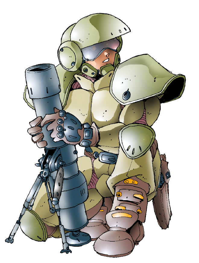 A collapsible, disposable rocket launcher designed to provide cheap close-range antitank firepower for infantry. While dedicated antitank troops are still more likely to carry R-40s, it is standard procedure for one rifleman in a squad to carry a pair of RL-12Cs in case of unexpected combat with armored vehicles. (Light RPG, Compact, Rapid Fall-Off, Ammo Hog)