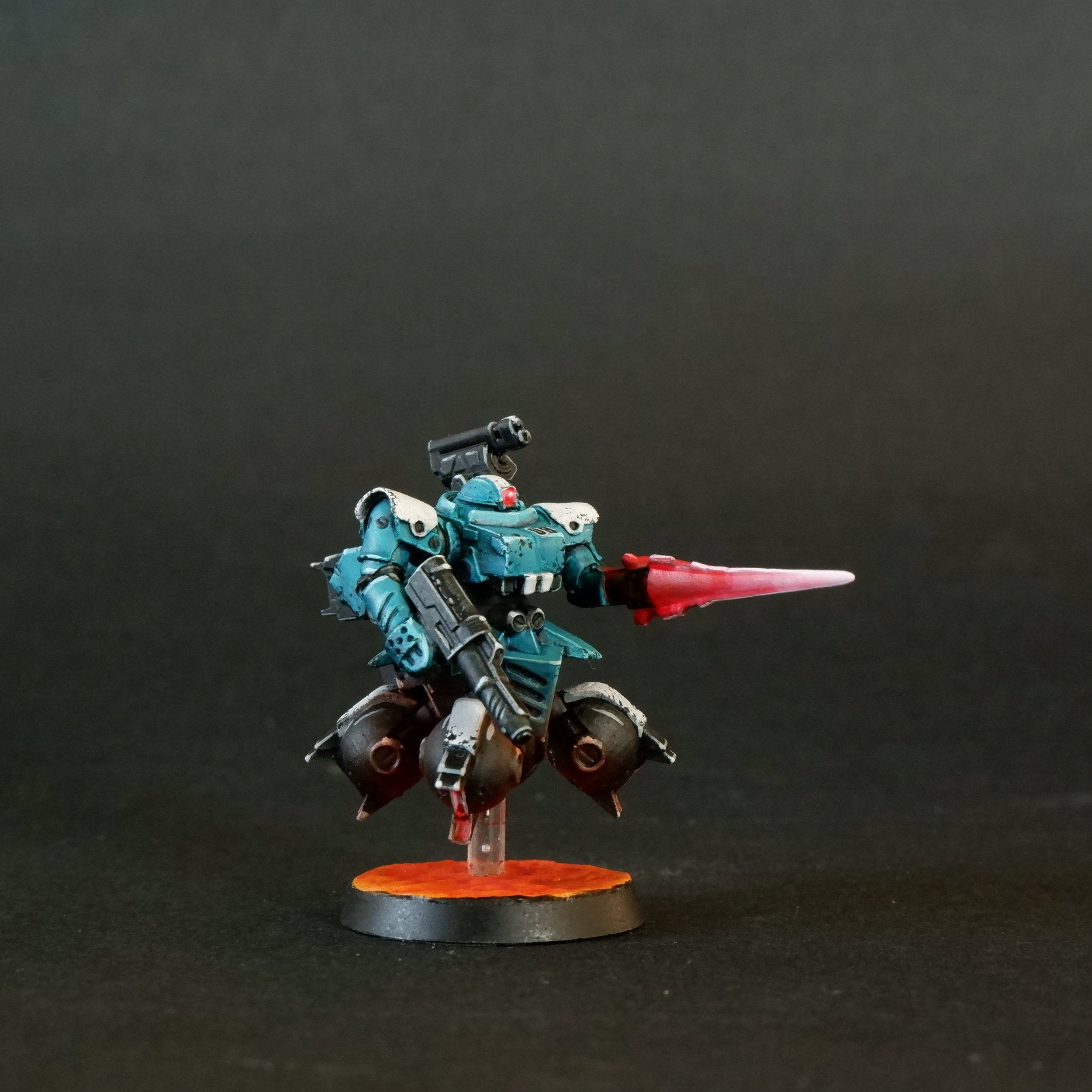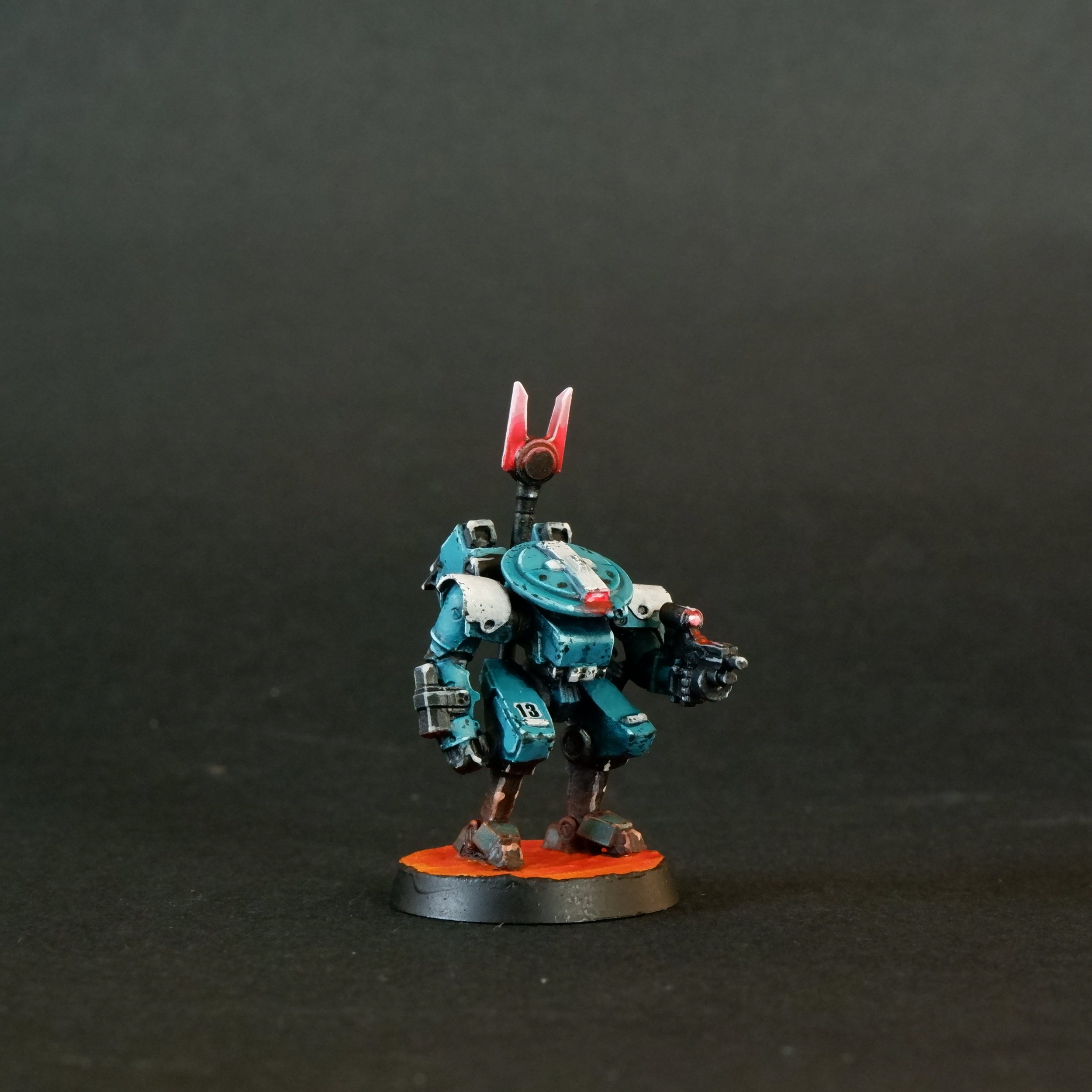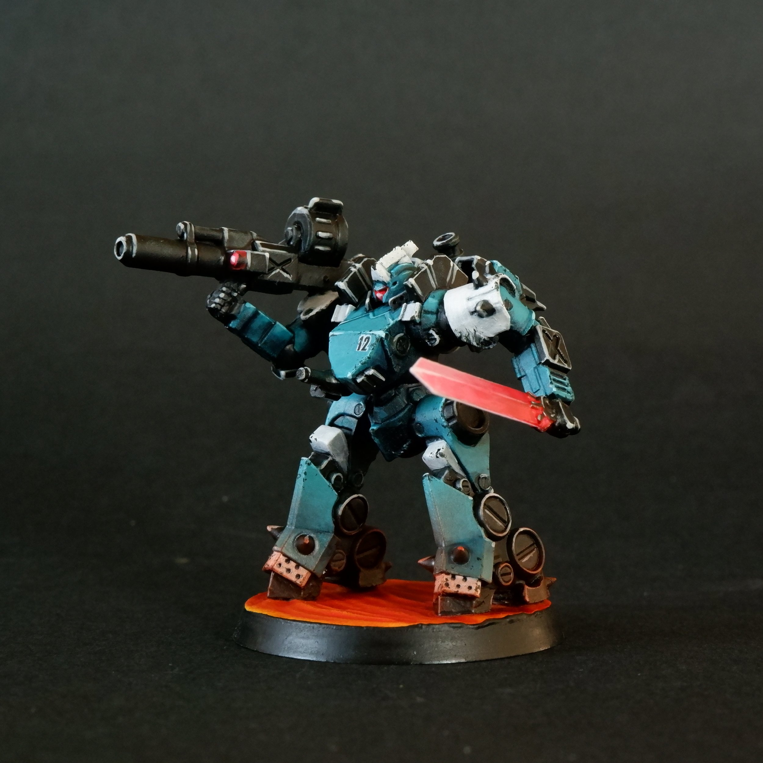 For the weathering I used a sponge and some black paint to give a used and battled look to the mechs as well as some orange pigments on the feet.