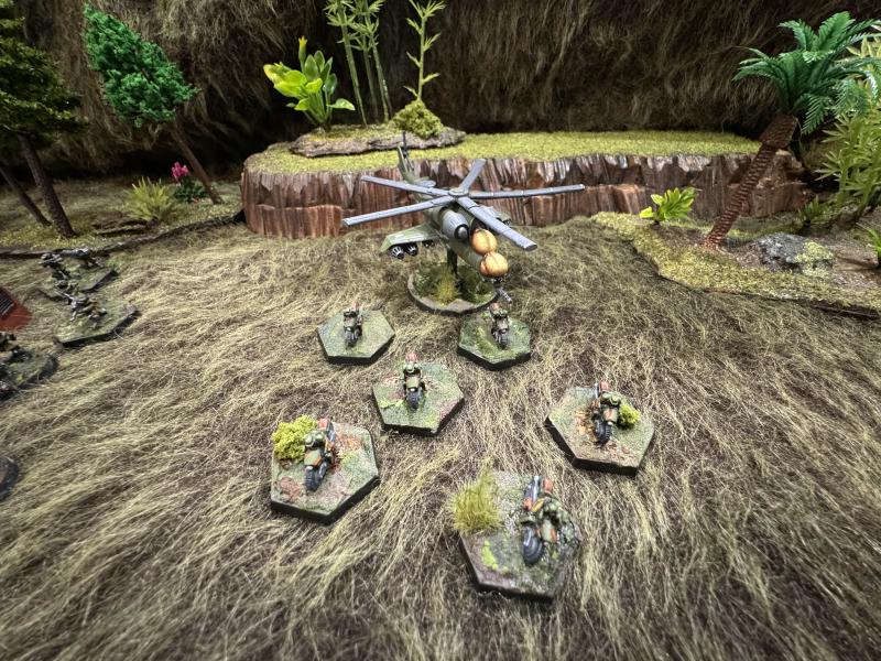 I really wanted to figure out what a force of jungle/swamp troops would look like. What would they need to move about? What equipment would they bring? The army was initially modeled after the US/Vietnam war. So it has a heavy reliance on ordinance, basic troops, automatic weapons, and flame weaponry. There is a small smattering of more special forces type units, but they are very much just a sprinkle. I also wanted a heavy focus on infantry and infantry vehicles (which is something I need more of). Basically, I wanted the army to be viewed with Fortunate Son playing in the background. My goal was for the army to feel “believable” on the table top, but also have some artistic bits to draw the eye. They are gaming pieces after all. I still have several models to paint to expand this army! A few more Jagers, some Copperheads, Rattlesnakes, Desert Vipers, Black Adders, Police Cobras, a Black Mamba, and a Naga.