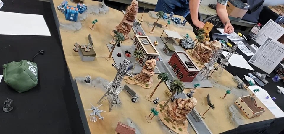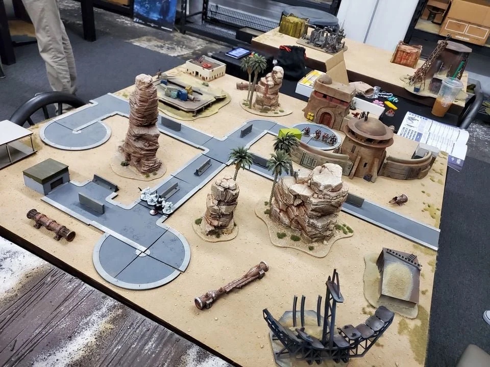 The folx over at Board and Brew, in Houston, TX, have been hard at work cranking out absolutely gorgeous Heavy Gear tables for their community. We’ve invited PJ to show off some of his killer tables. They are a mixture of MDF, scratch built, model railroad, and 3d printed parts, that come together to make some incredible environments to play on.