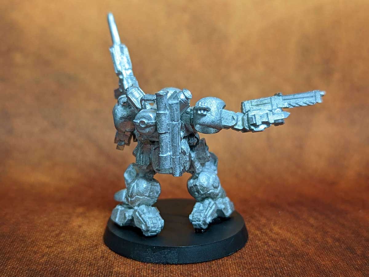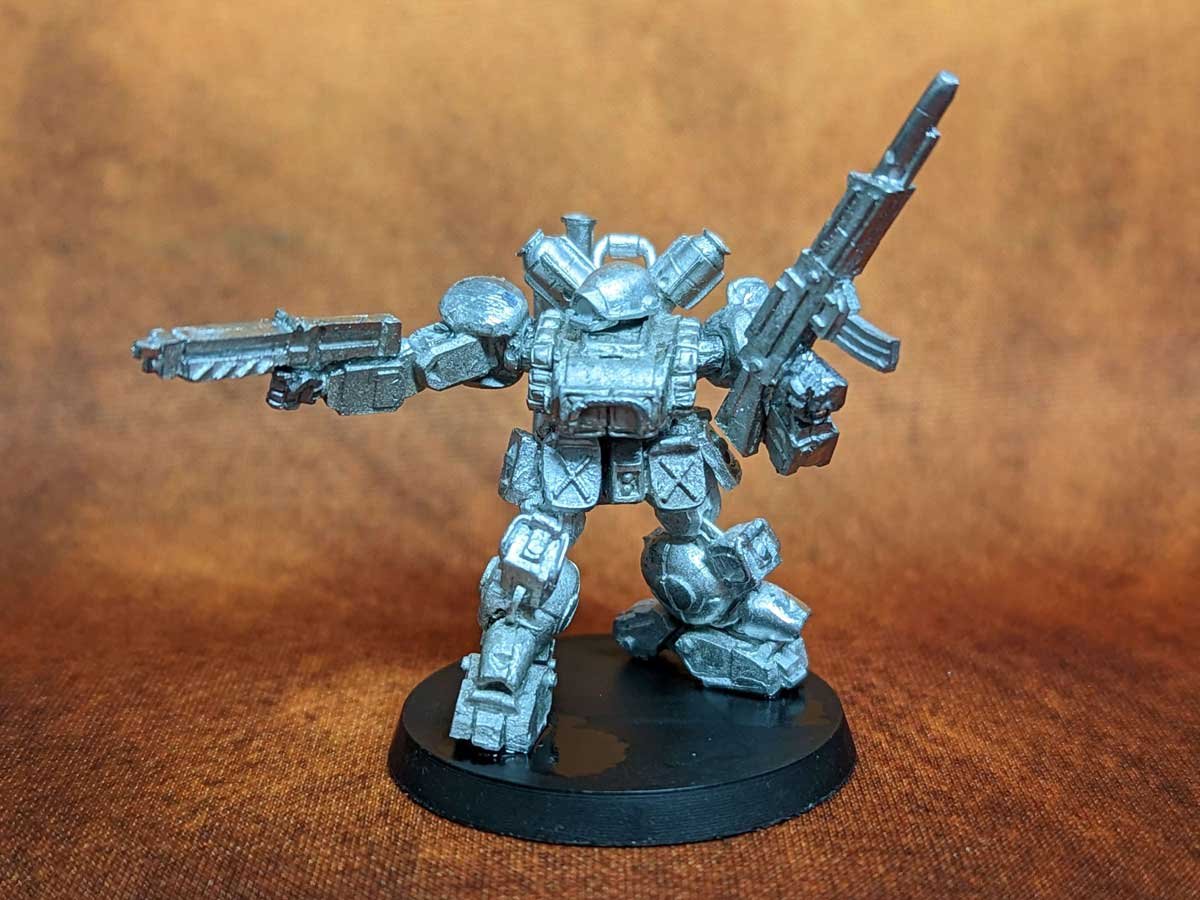 Starting with a standard Para Jäger, you simply need to assemble it as normal, but with a MRF in one hand, and LSMG in the other, or a folded version of the LSMG hanging from the hip. Attaching the Mortar can be tricky, but I feel like you have a couple options for positioning it. You can put it squarely on the back, where the parachute normally attaches, it’s fair to assume that the chute has been used during deployment and has been removed since. Or you can attach it to the back of a shoulder, which you see a lot in Southern designs.