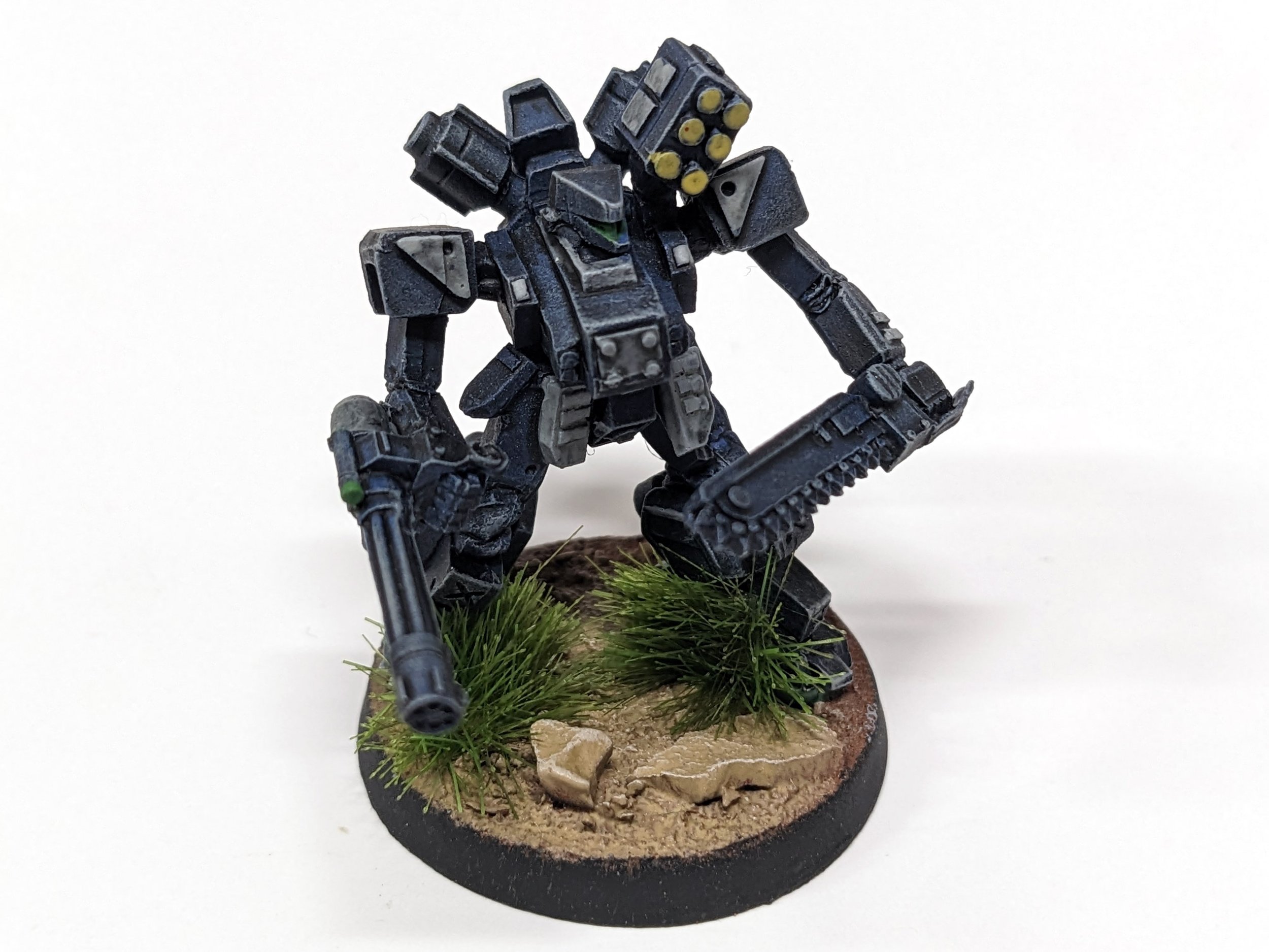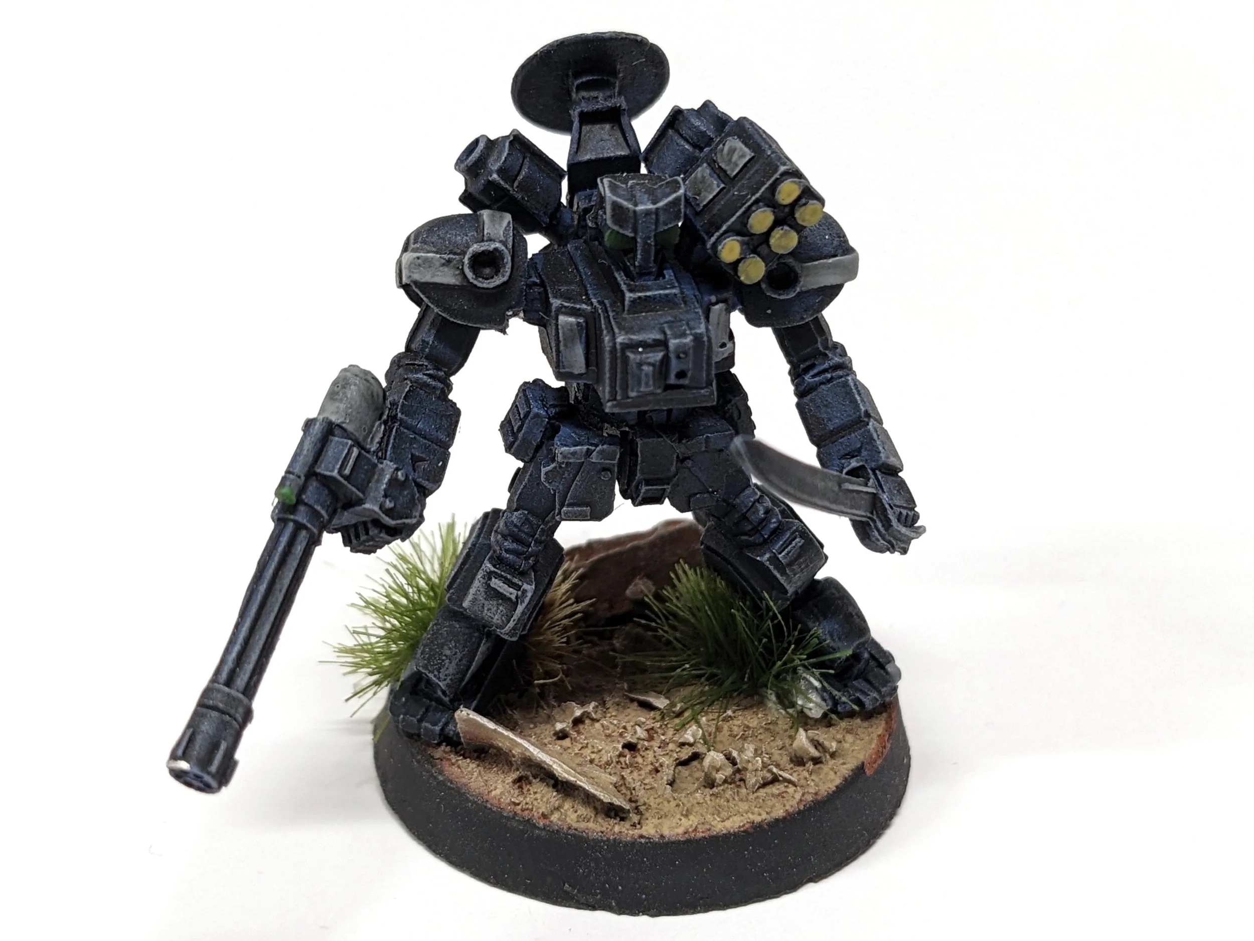 I then added a coat of Army Painter Grim Black Speed Paint. The black comes out beautifully. Enough of the blue from the base comes through and gives the black a depth. When doing stealth black panels or armour, I normally glaze with a black blue mix for the same effect. These paints have been a game changer for me in shrinking my piles of shame.